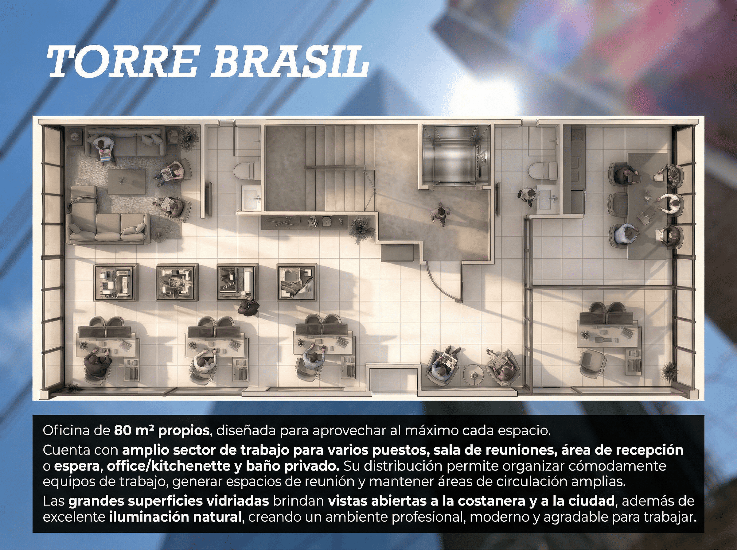 Edificio con una ubicación privilegiada en Posadas-Misiones, a pasos del centro y la costanera, diseñado con Piel de Vidrio, concepto vanguardista e innovador para aumentar la experiencia y visuales en relación a la ciudad. Ofrece departamentos funcionales y modernos de 1 y 2 dormitorios de planta exclusiva, como también oficinas y áreas de recreación.